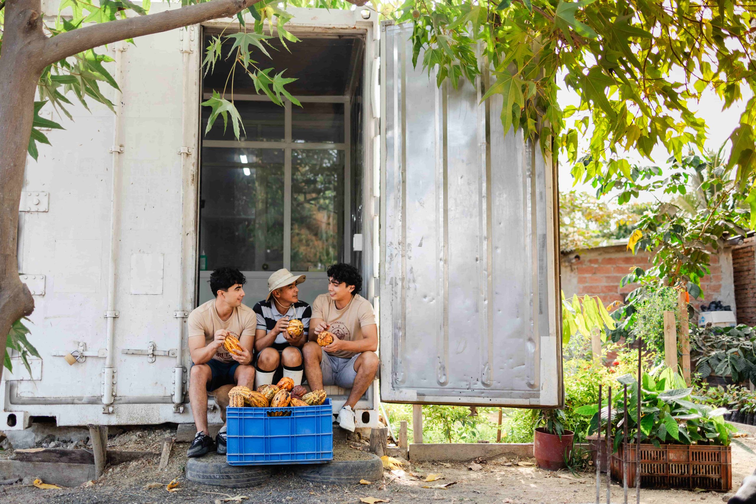En casa, las jornadas empiezan temprano: oración, planificación y trabajo en equipo. Un día se riega el cacao; otro se cosecha; en la siguiente semana se pela y se tuesta el grano de cacao; después se muele y se templa para dar forma a las barras. Este orden, repetido con paciencia, garantiza calidad y un sabor que honra el origen del cacao ecuatoriano.